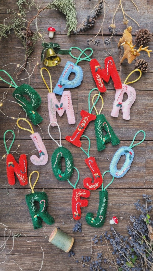 Letras navideñas de 10 x 5 cm, perfectas para colgar en el arbolito, identificar los platos en la mesa o sumar un detalle especial a la decoración del hogar. Personalizables y hechas a mano, para celebrar con estilo y calidez.